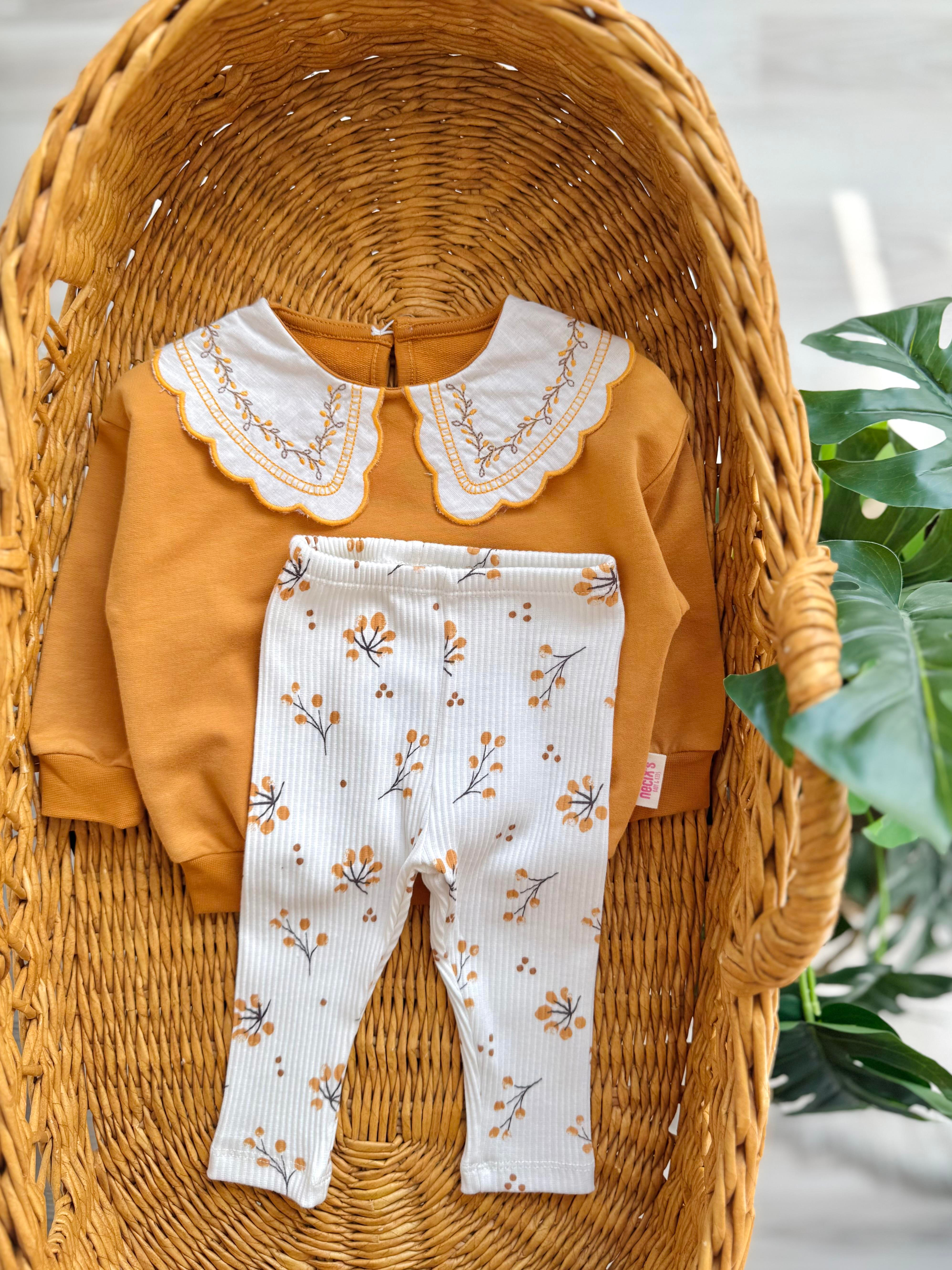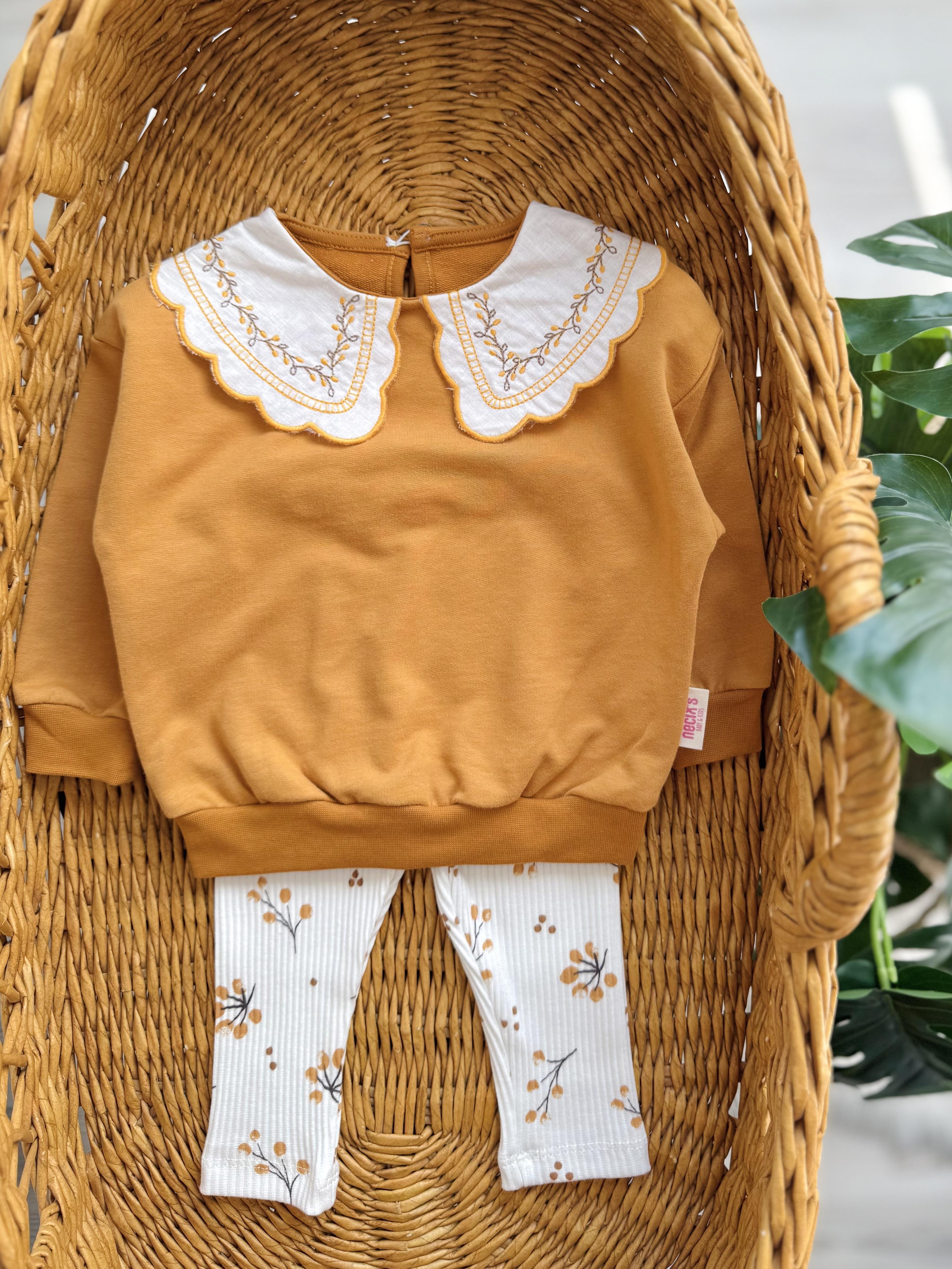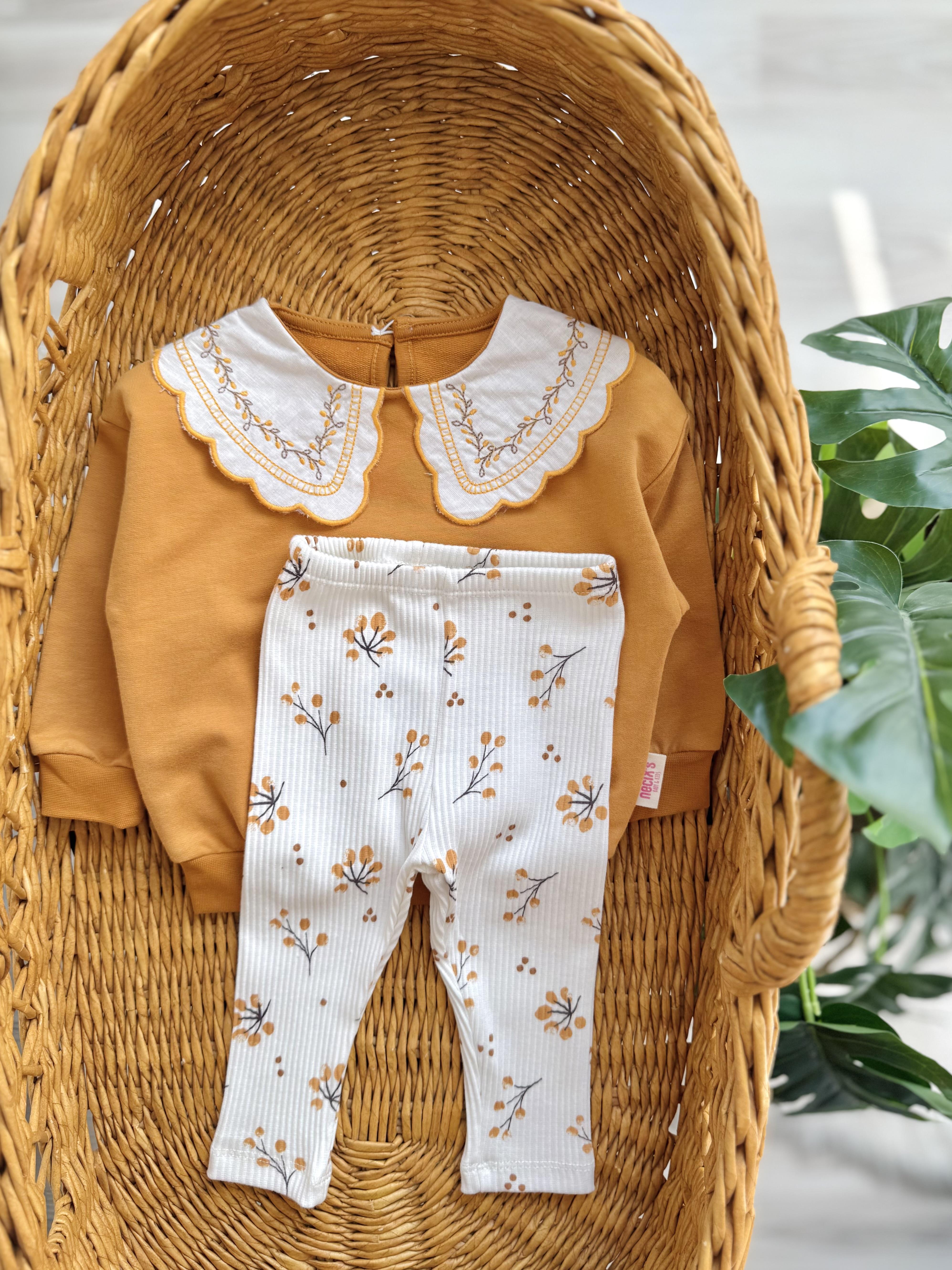 Autumn Sarı Yakası Nakışlı Mevsimlik Taytlı Takım