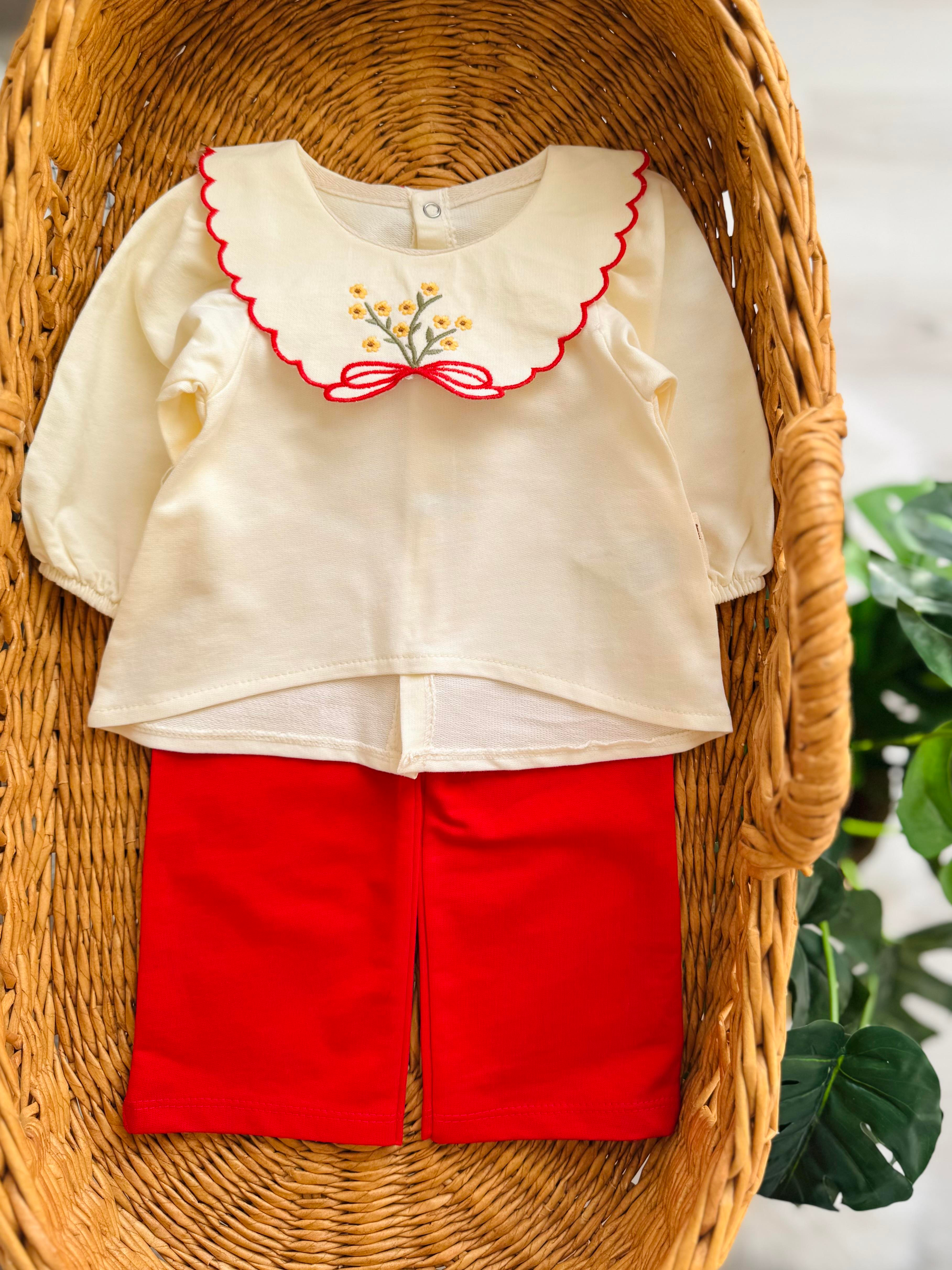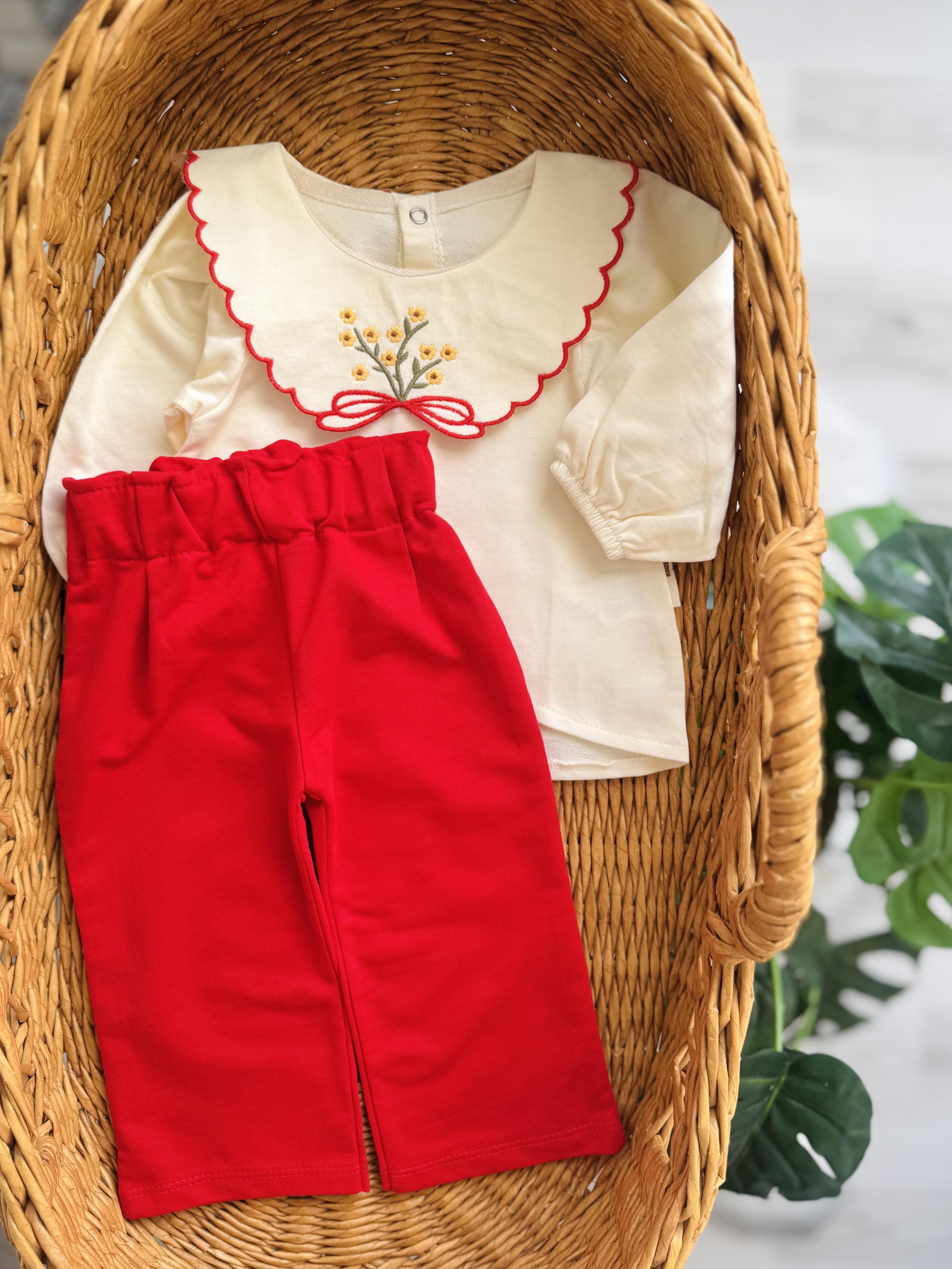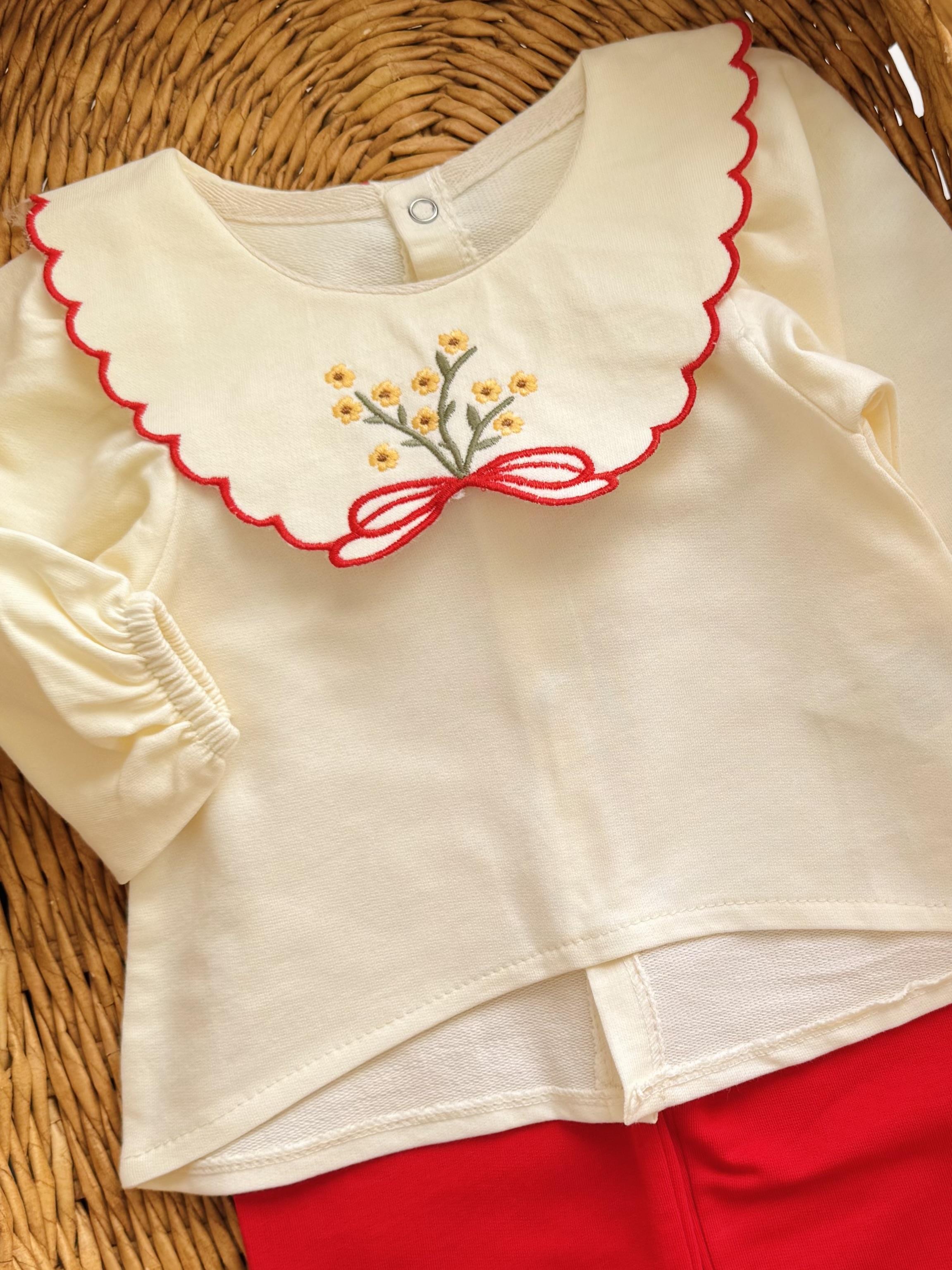 Leila Yakası İşlemeli 2li Mevsimlik Takım