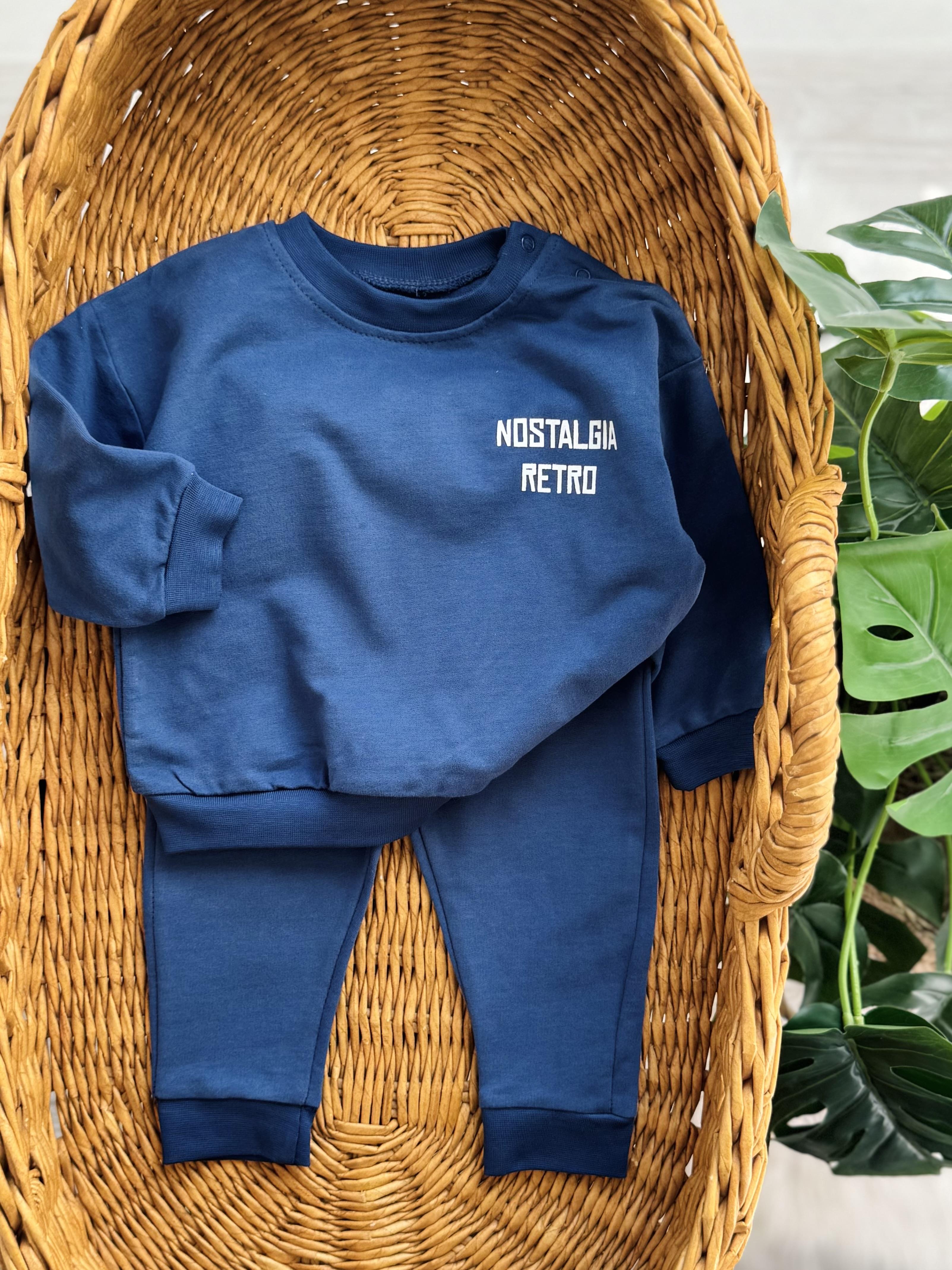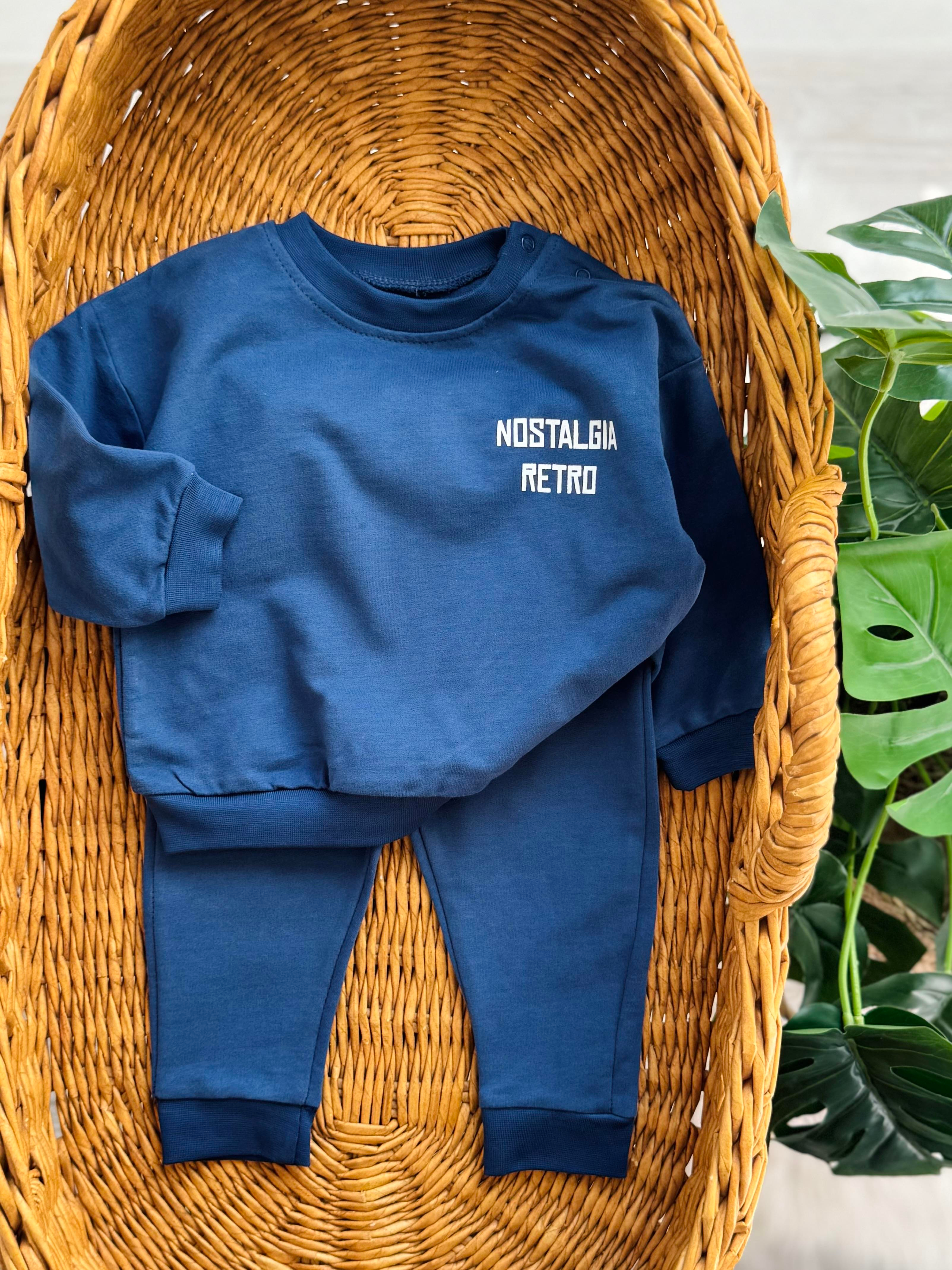 Retro Lacivert Sırt Baskılı Mevsimlik Takım