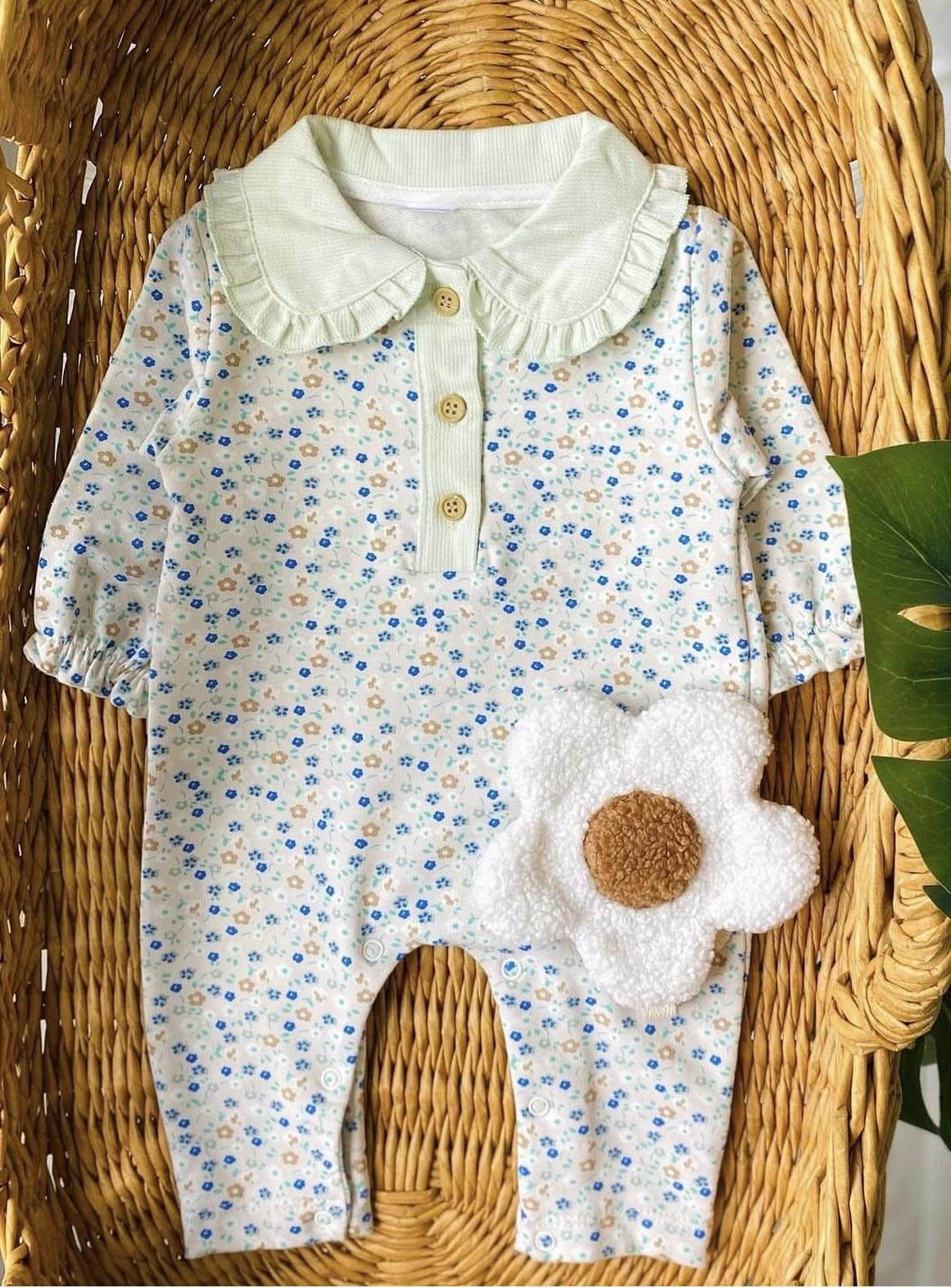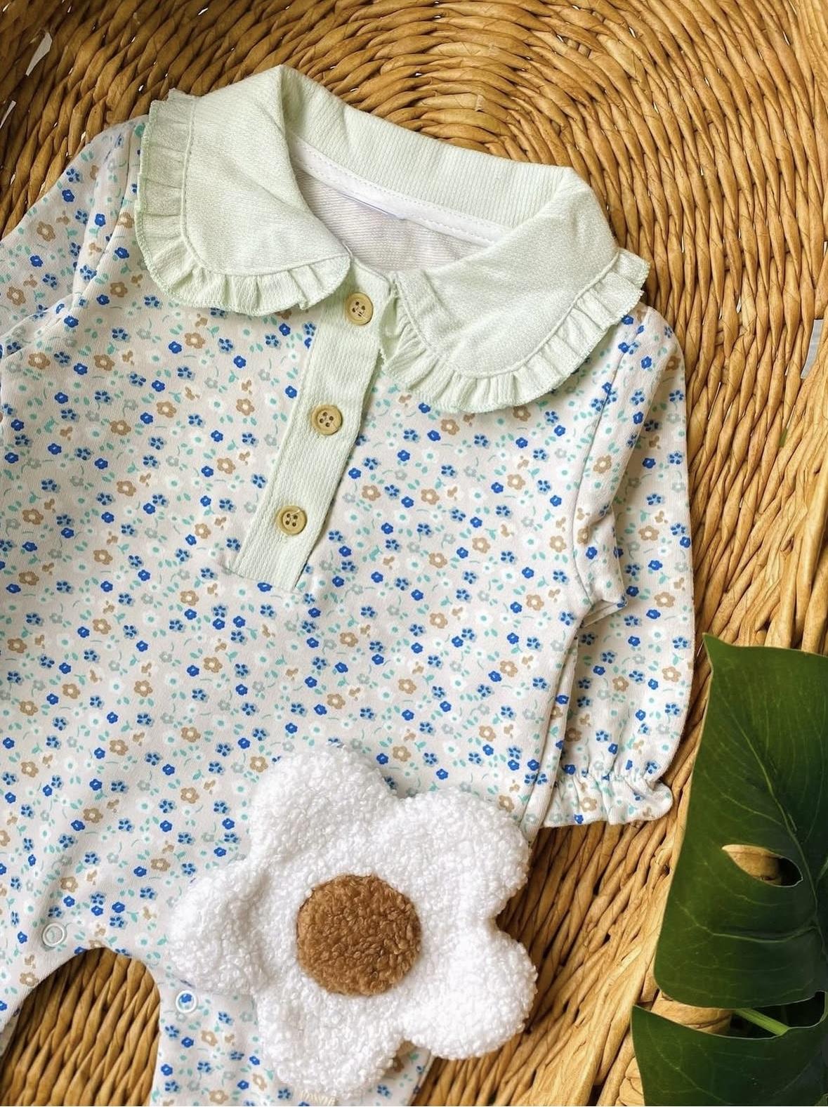Yeşil Çiçekli Yakalı Tulum