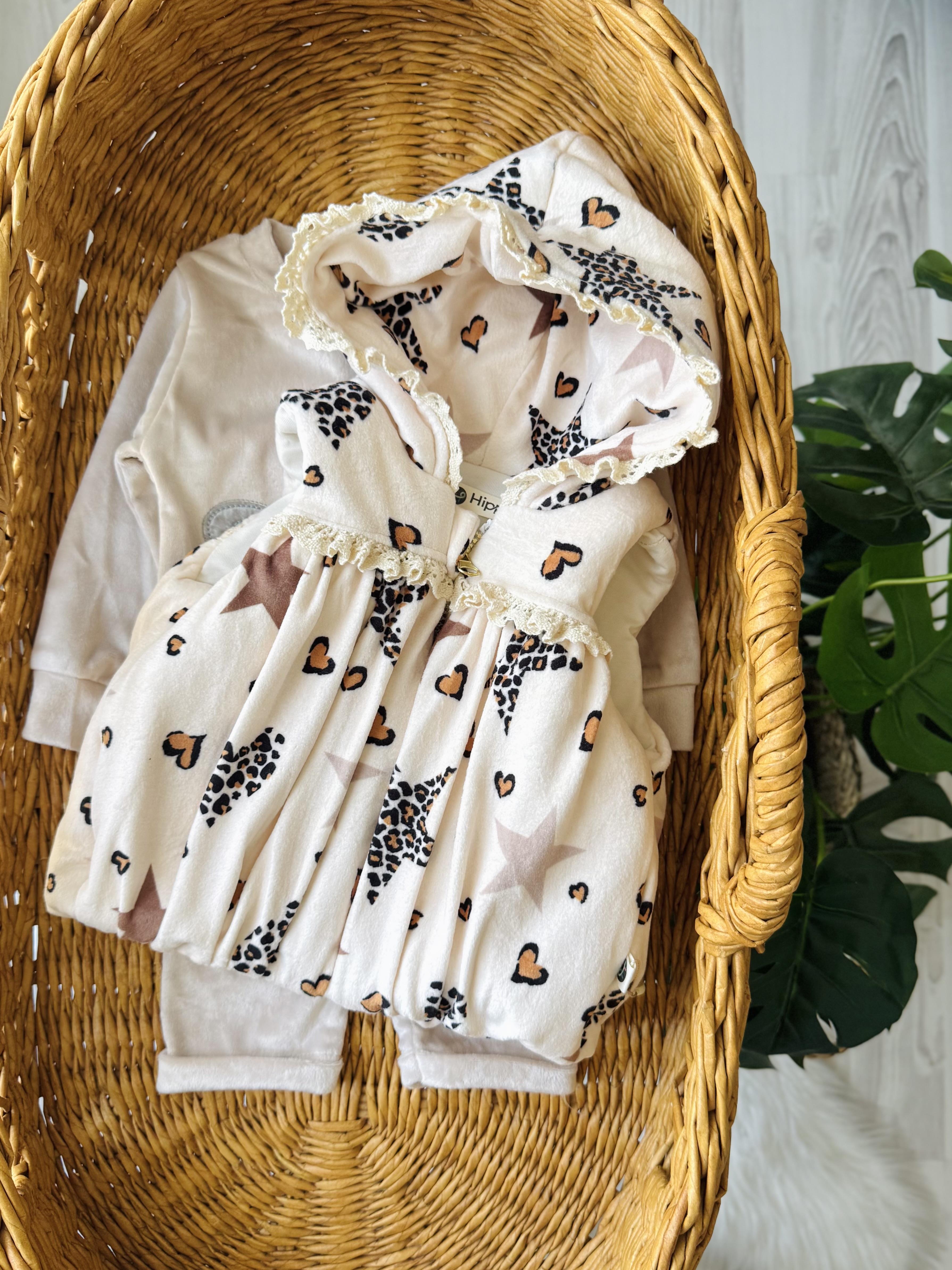 Yıldız Desenli Yelekli 3lü Yumoş Takım